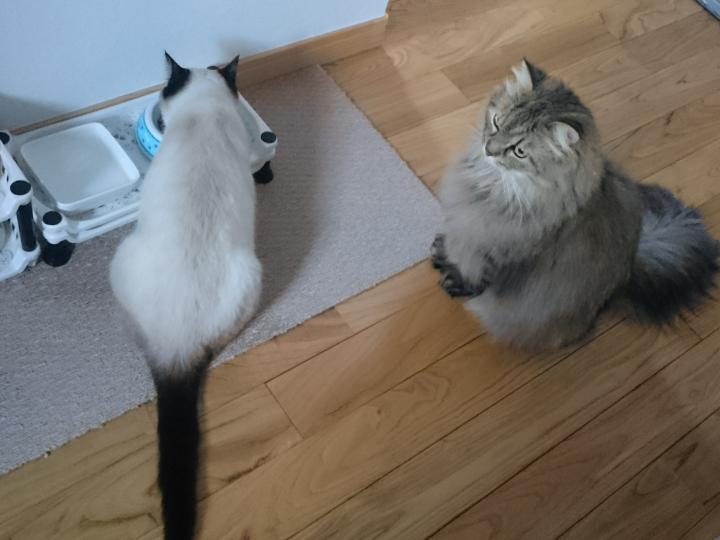 尻尾ぷりぷりして、ご飯残りを待ってます(笑)