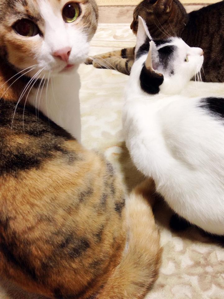 4姉妹のうちの3にん。しまちゃん、みけちゃん、はげちゃん。