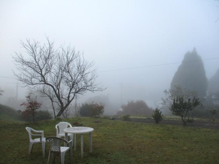 家は山の上の標高がけっこう高い所にあるので、霧がよく発生します。昨日は幻想的に濃く