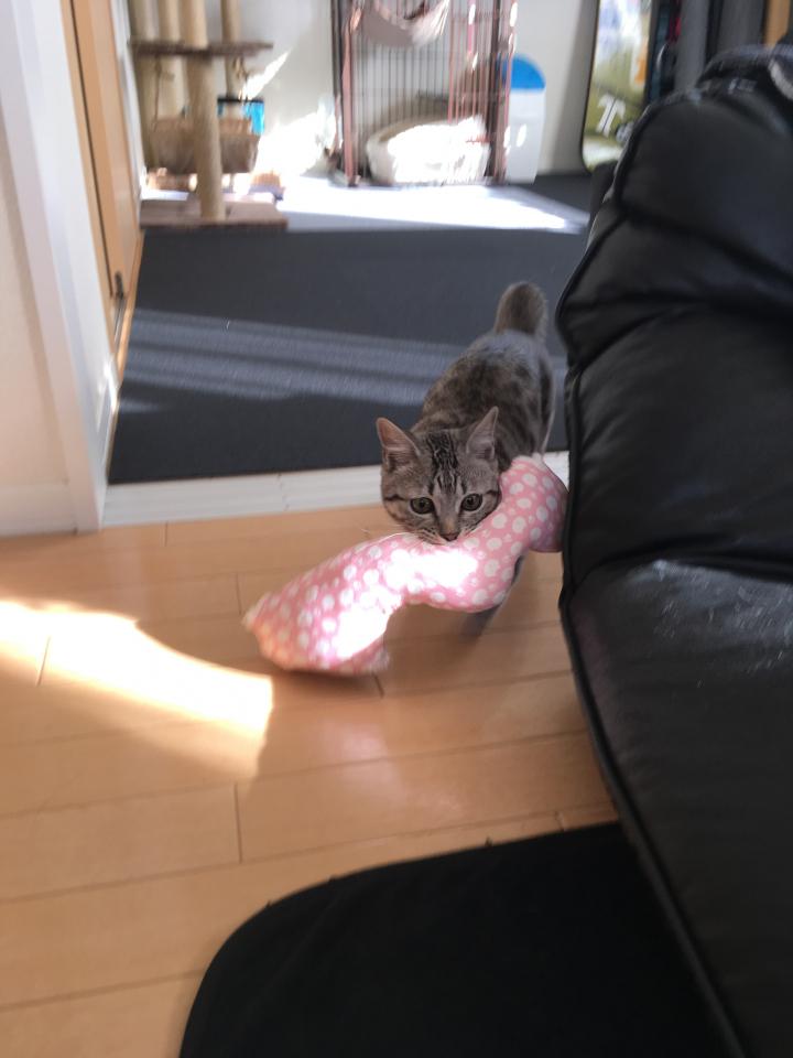 投げたっきりクッションは戻って来ませんでした。笑