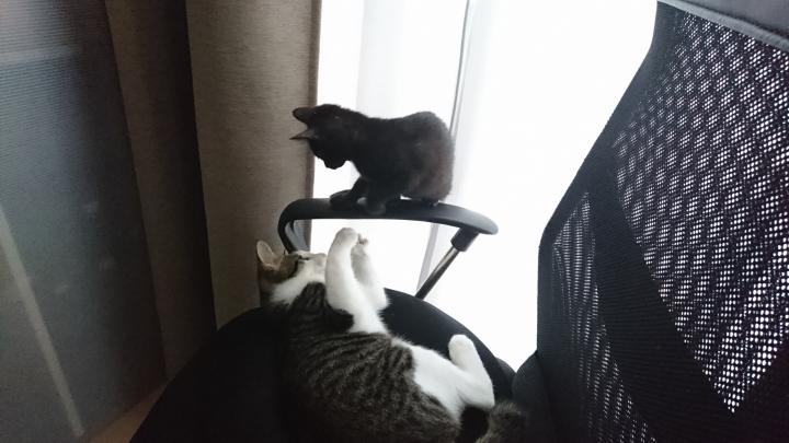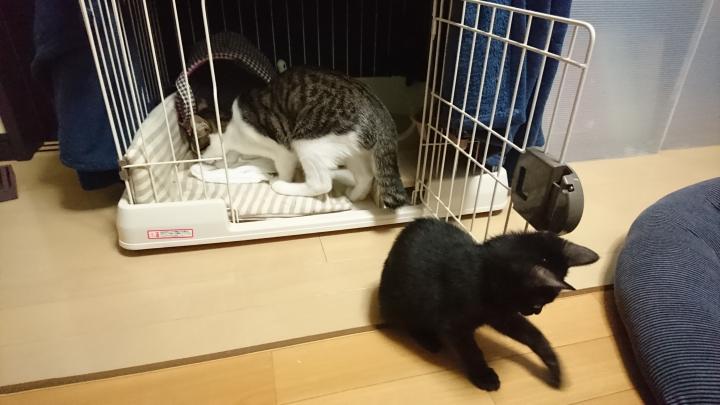 キジシロのお兄ちゃん、私の後をついてた匂いを嗅いでくるから、遊んでくれるのかなってそばによったら