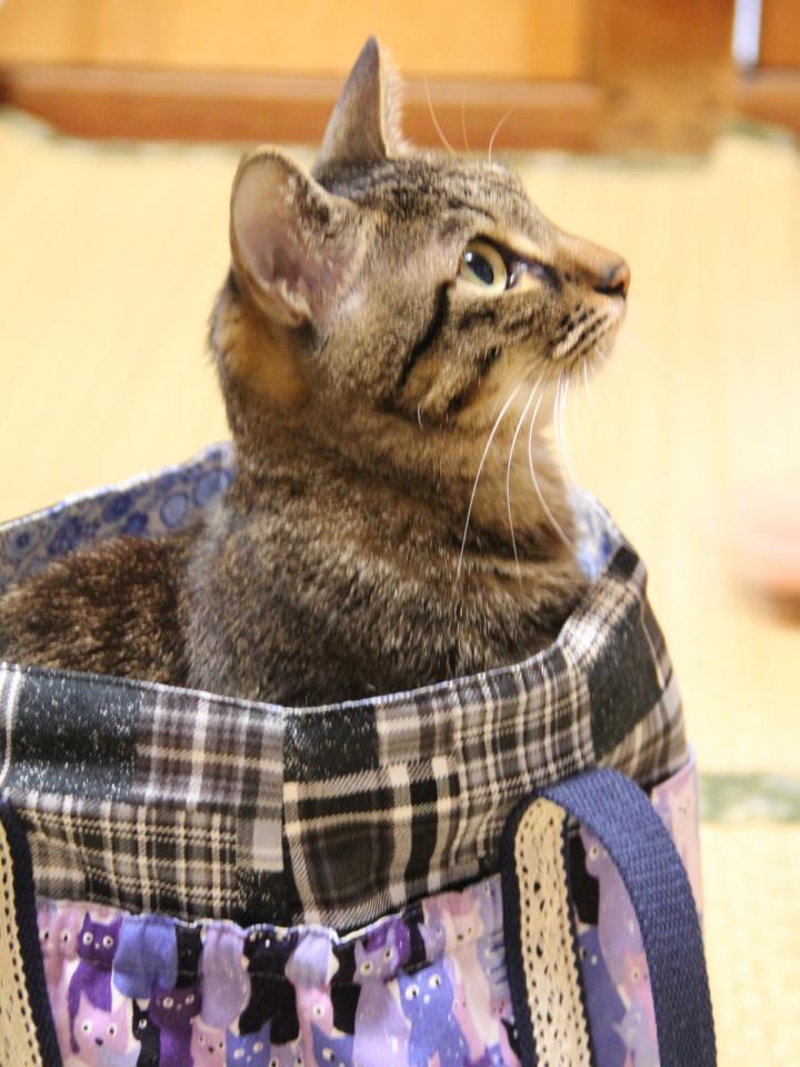 外の猫柄の布は作っていただく前に選ばせてもらったのですが、選択肢の中に青と紫が有り、どちらも可愛く、とても悩みました。