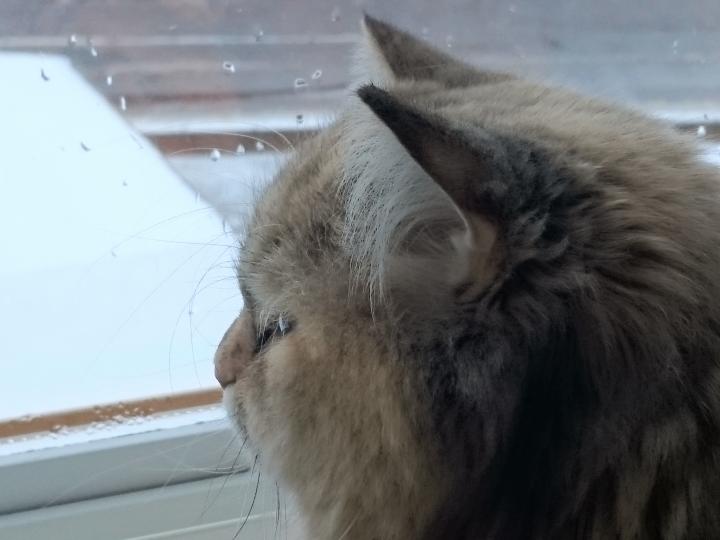 太郎君の帰宅後は二階から昨夜降った雪を眺めてます。