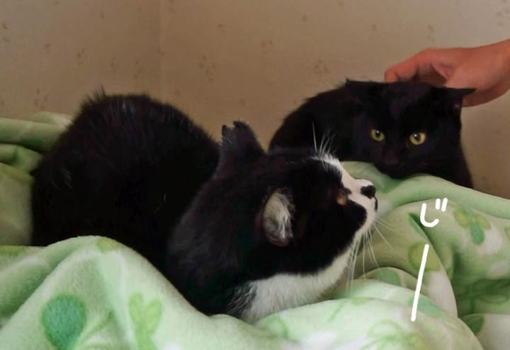 巣材の交換の為に、本日も巣穴にひきこもりな2にゃんのお布団引っぺがしました。