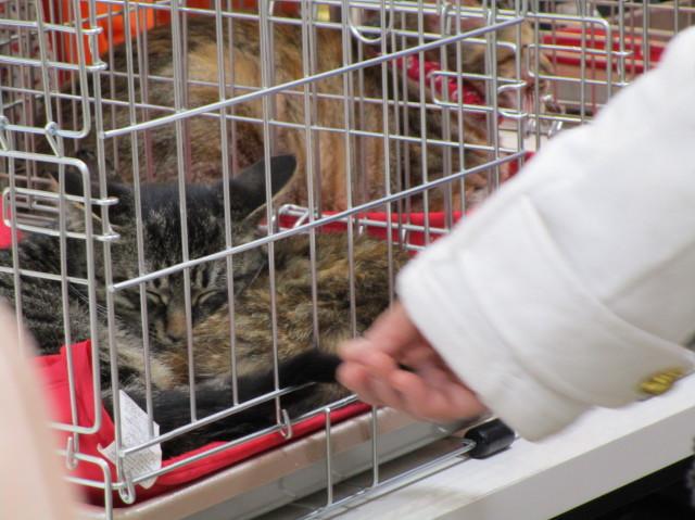 おばちゃん、ケージの外から猫の尻尾を引っ張っちゃイカンがな~(*ノωノ)オイオイ