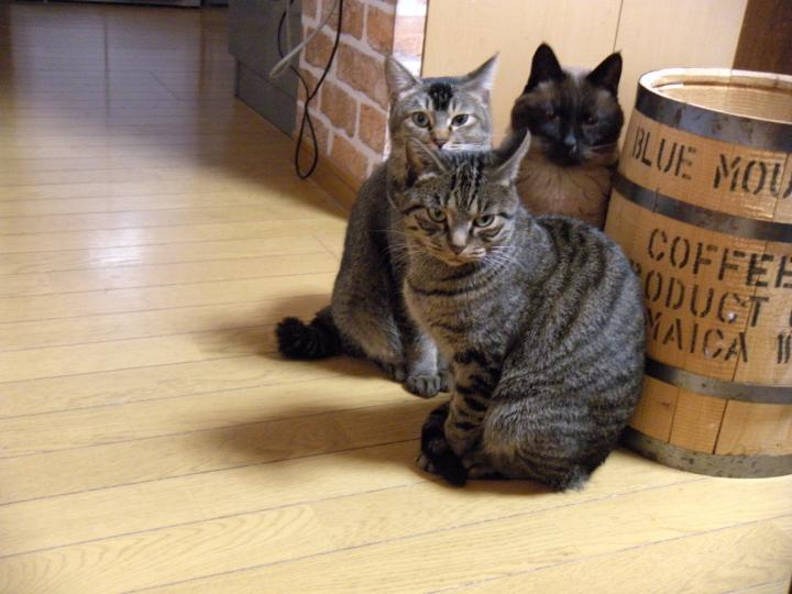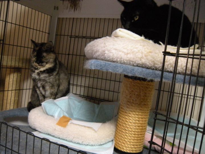 マリーちゃん(サビ猫)、さとみちゃん(黒猫)の年長さん組です。