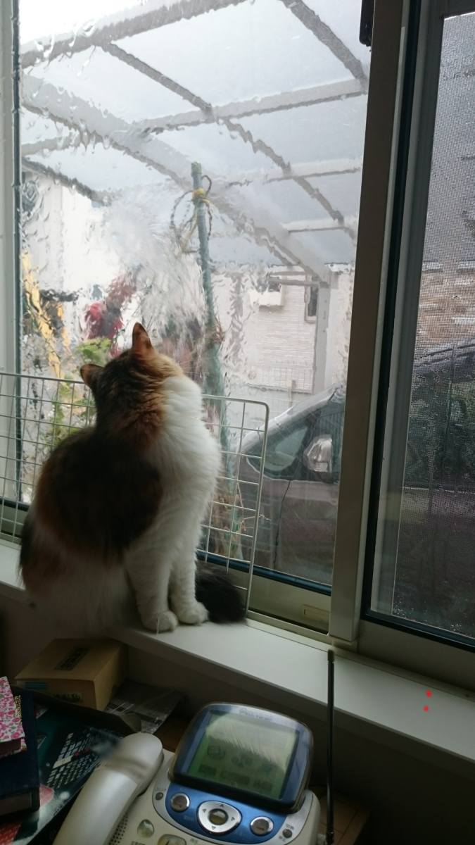 実は、去年の年末に窓ガラスを掃除していて、窓にホースで水をかけていたところ、ぎんちゃんが水をちょいちょいとするので、Mさんに放水係を代わってもらってシャッターチャンスを狙いましたが、肝心のぎんちゃんがちょいちょいを止めてしまいました……😢