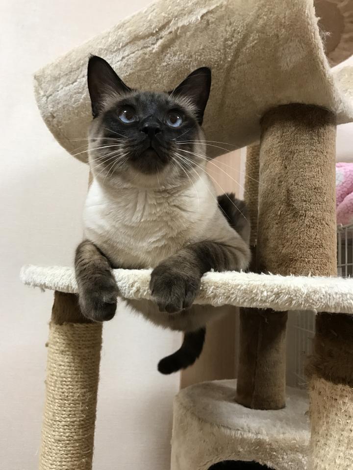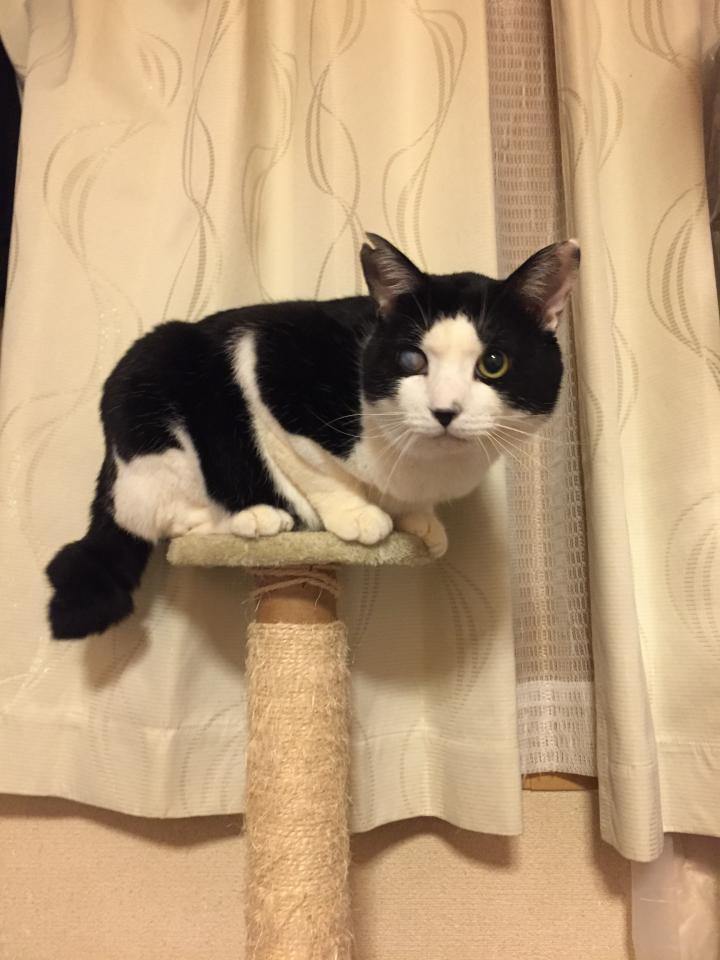 目が見えなくても爪研ぎの上に乗れるはちべぇさん(≧∀≦)