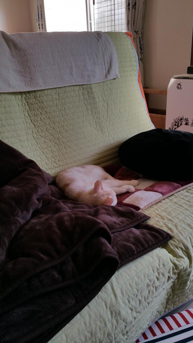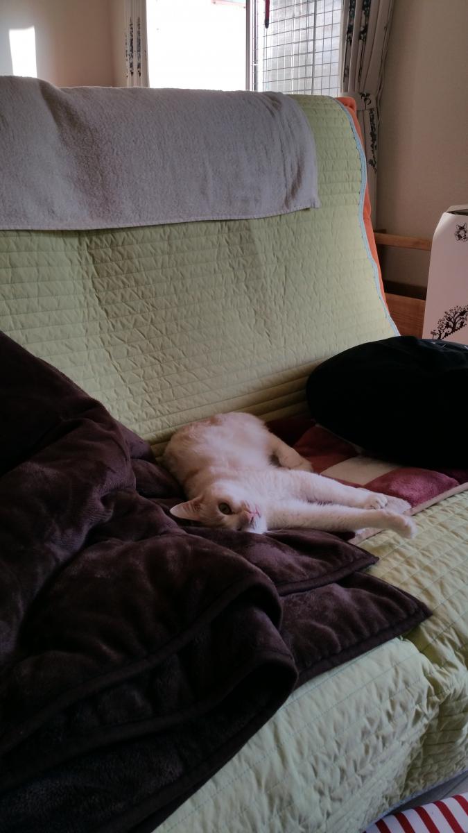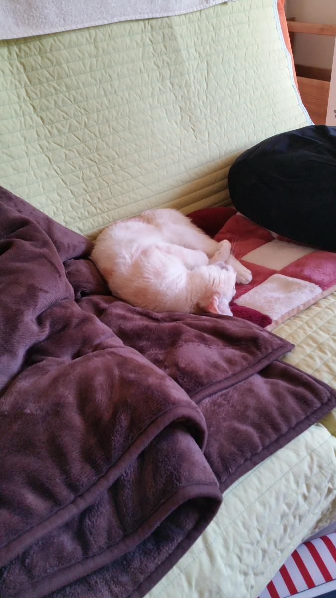 アルが気兼ねなくお散歩できるように、にょんはお布団で潜伏(^^;)
