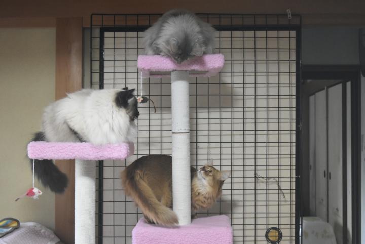 一番上に 猫が乗ると 鴨居に届いてしまいそう💦