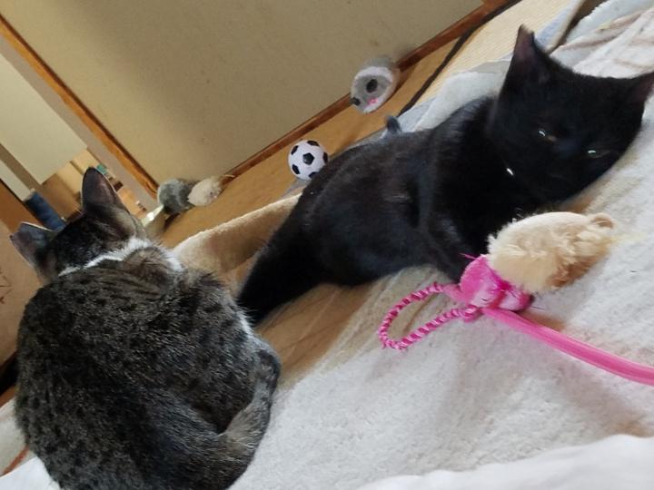 今年1月16日に我が家にきて三週間に 先住猫のさくらとうまくいってるんですが、人間が怖いみたいで 抱っこはさせてくれるんだけど私のまわりにうろついてくれない🎵逃げちゃうなーだから押し入れ広いので自由にさせてあげてます。毛布でふわふわに 毎日私が押し入れにいき なでなでと ゴロゴロいってくれるんで安心してます。夜はでてきて さくらと運動会してます。去年さくらがきてはじめての子猫かい 癒されてます。くうちゃんゆっくりいこう}
