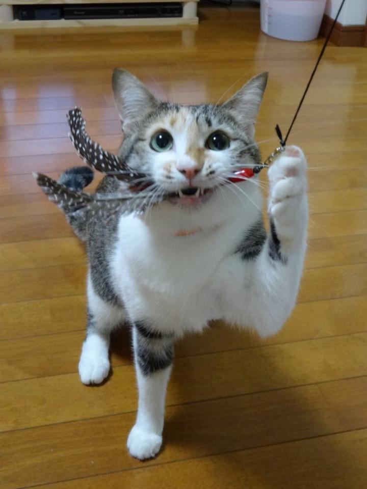 新しいじゃらしを導入したところ、もの凄い食いつきっぷり。