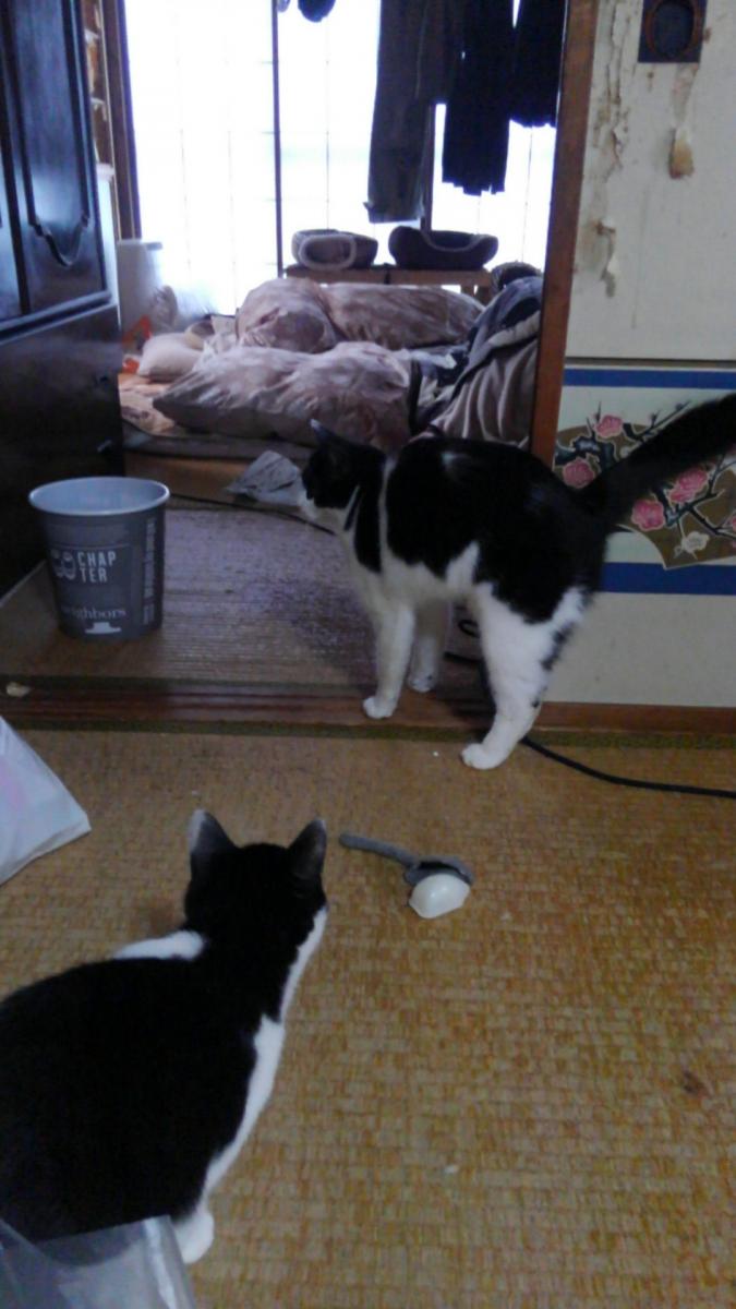↑襖に匂いをつけながら、台所にいる誰かを狙うプチと、それを狙うちょびチビ