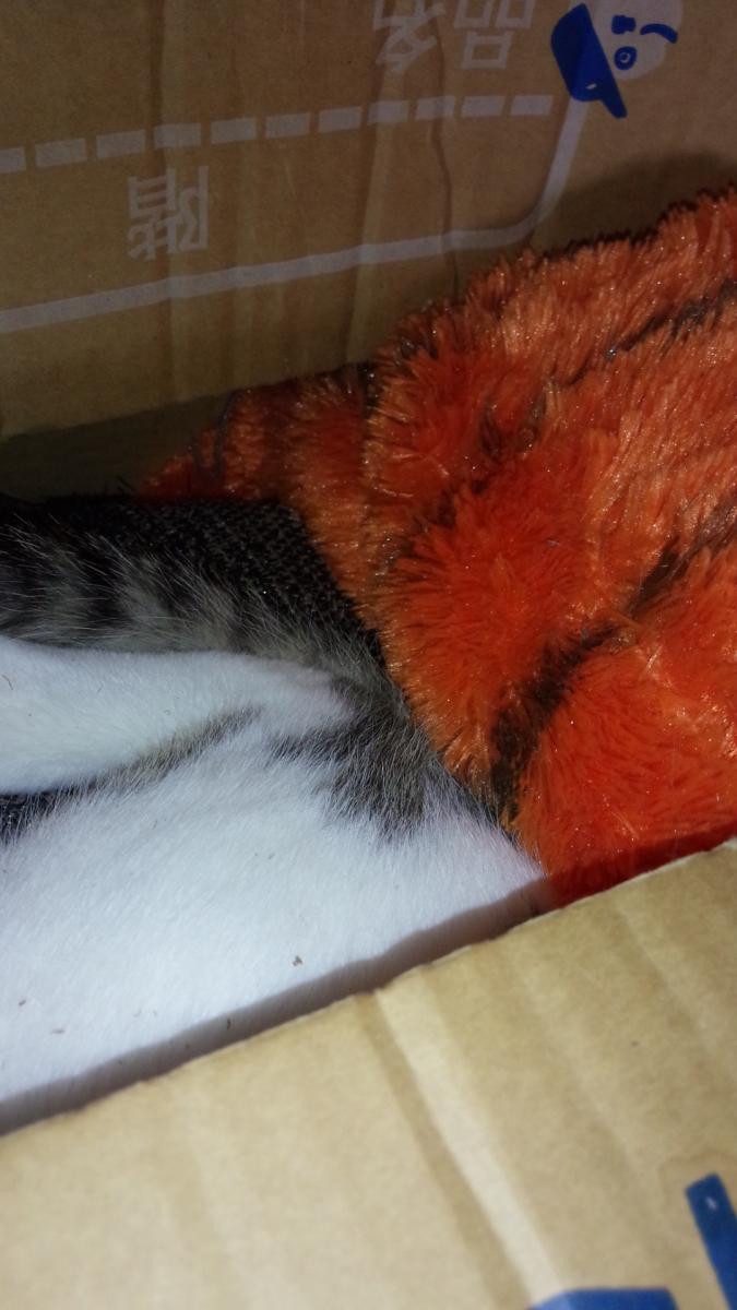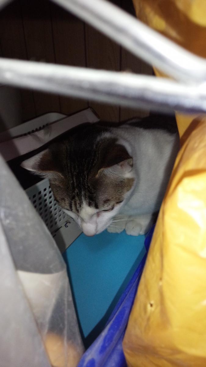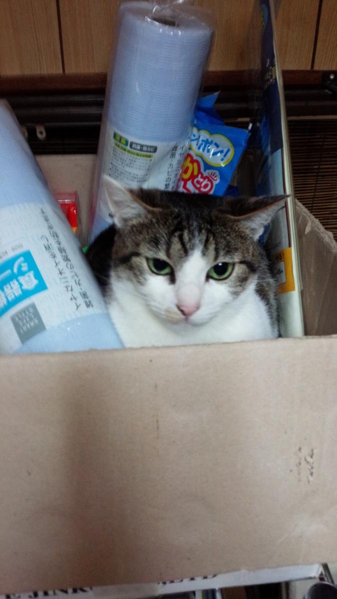 その後親子3匹、猫部屋の段ボール箱の中に引きこもり…。