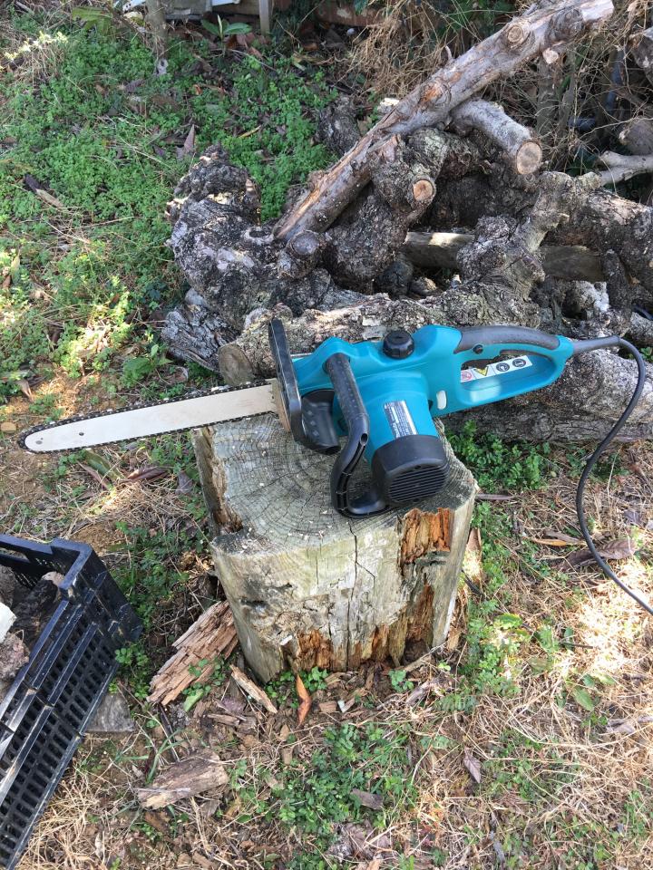 電動のチェーンソーは音が静かでいいなぁ