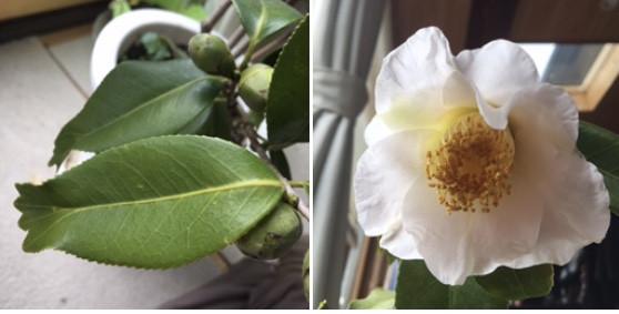 金魚葉の白い椿