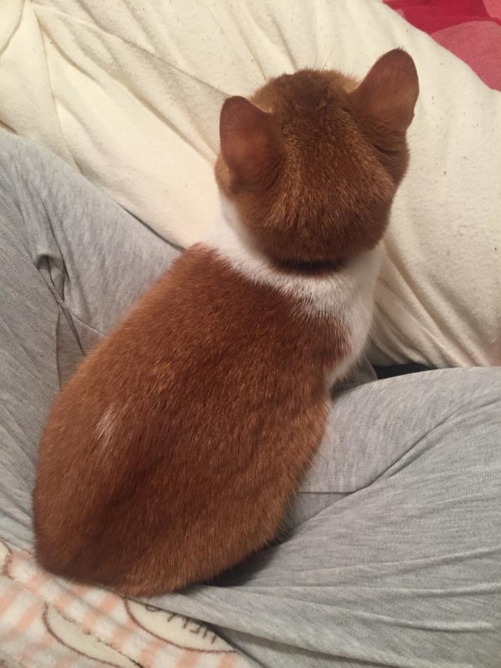 夜寝る前に珍しく私の足元に収まるこたろう₍˄·͈༝·͈˄₎◞ ̑̑