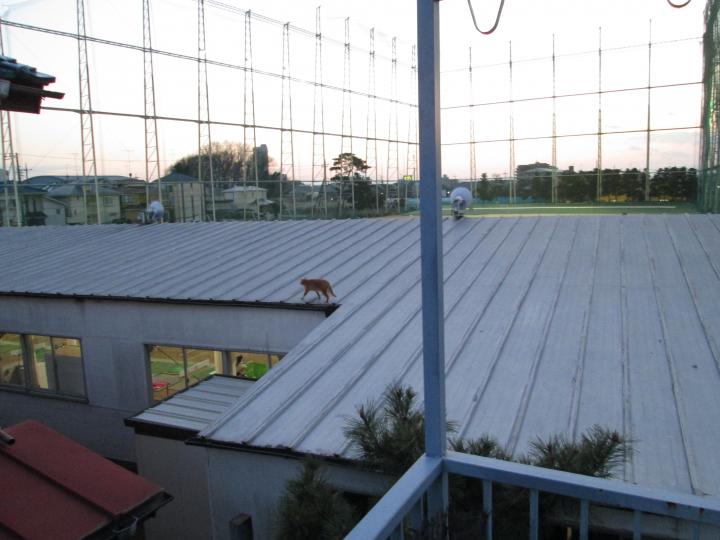 と、即行隣のゴルフ練習所の屋根つたって帰っていきました。