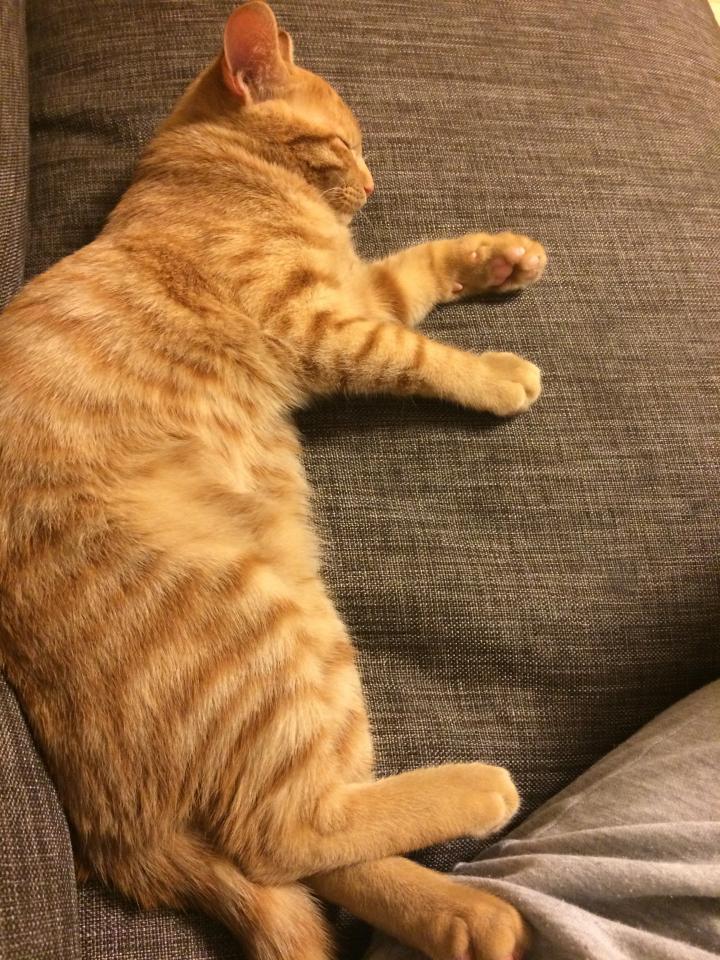 洗濯物たたみ邪魔する。ソファーでまったりしていると痛い遊んで攻撃をかましてきそうだから、遊んであげたら………