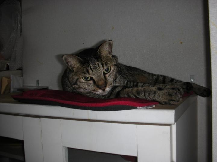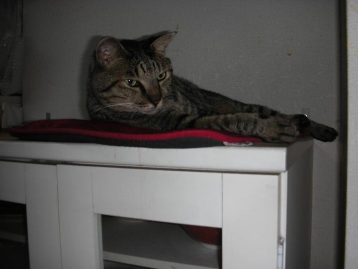 表情みると何となく体調悪そう。お散歩にも出ないで、いま食器棚の上で寝てるけど大丈夫かな?