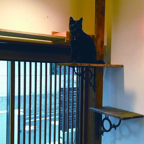 キャットタワーから猫神棚へ繋げる丸太と足場を。