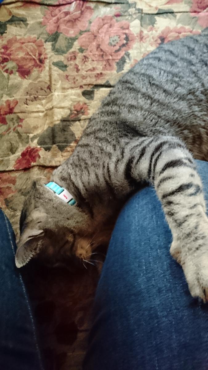 お家に入って来てすぐ、ばぁちゃんに『ただいま』してゴロゴロしたと思ったら、私の足で爪研ぎして(笑)