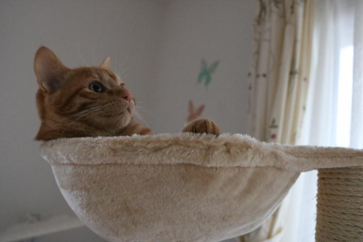 あ、キャットタワーも買いました。今まで落ち着く場所が、ベッド下だったユウの落ち着く場所になり、嬉しいです。大分ミーとユウは、キャットタワーにいます。