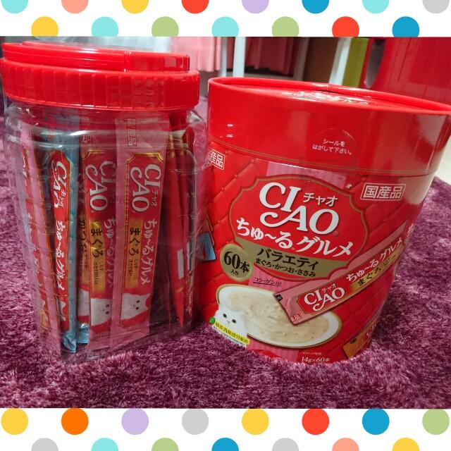 こちらは昨日調達した「ちゅーる」のお得パック。50個入りと60個入り。