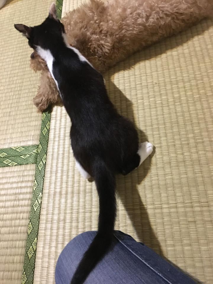 まめくん、ふぅちゃんに首元がじがじされてますが、動かずされるがままです。