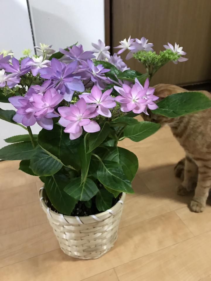 ブン太が興味深々で葉っぱの匂いを嗅いでました。(笑)