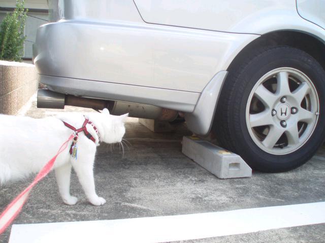 車の下に野良猫さんがいたので挨拶をしようとしたら逃げられました。
