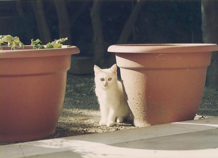 半信半疑の中、なんと3ヶ月後、白い仔猫1匹が開けっ放しの台所でウロウロ