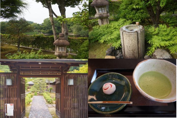 茶室「織部庵」で美味しい抹茶とバラの和菓子を頂きました。