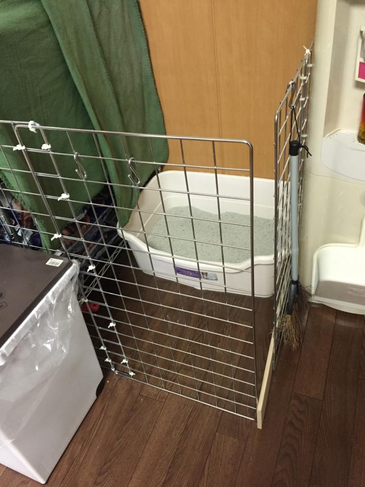 トイレしたら、飛び出すからその勢いで散らばるので、ゲートを作って見ました。