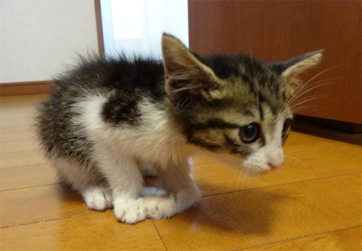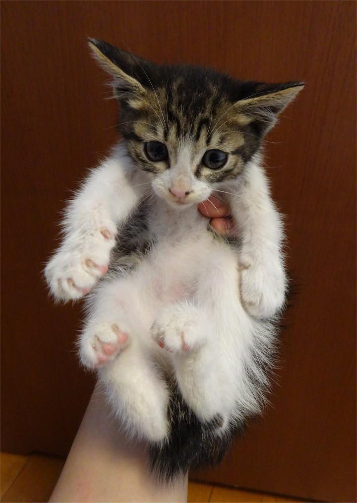 午後から病院へ。先生が注意して腕を触っていると、「ん?」 レントゲンを撮ってみると、左腕の肩と肘の間の骨が一度骨折したあと「く」の字に曲がってくっついているのが分かりました。手術で真っ直ぐにできないこともないが幼過ぎるとのことですし、そもそも曲がってくっついたとしても歩行には問題ないでしょうとのことです。左腕が使えないのは、骨折が治りかけで痛いためか、もしくは神経の損傷のためかもしれないそうです。前者なら一時的ですが、後者なら生涯残る障害の可能性も。両者の切り分けは現時点で難しく、とりあえず経過観察することに。生涯残る障害ならば、将来の里親様にはご理解頂かないと。