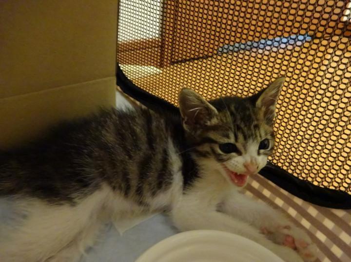 それにしても、左腕が使えないんだから、そりゃ捕まえるのが楽だったはずです。人一倍シャーシャー言うのも、素早く動けないからより警戒心が強いためかもしれません。背中に傷があったし、下唇も少し怪我していたし、落下か何かの事故に会ったんでしょう。