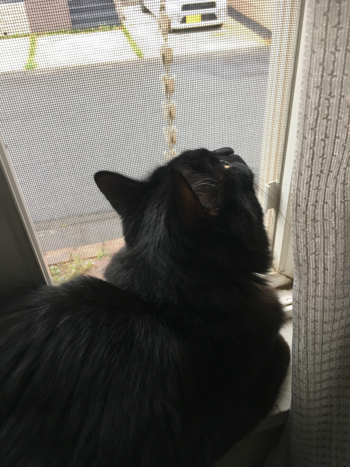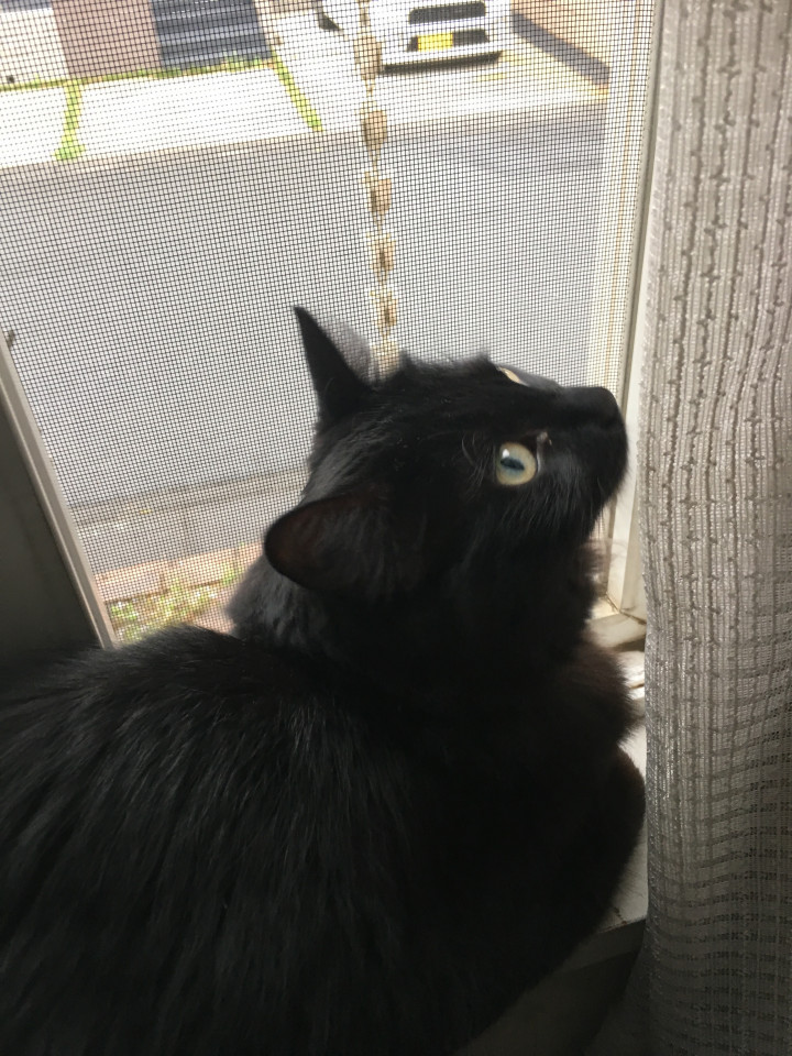 「鳥さんいた❓」私がカーテンをあけて話しかけるとチラ見して「ん〜ん( *`ω´)」ちょっと不機嫌
