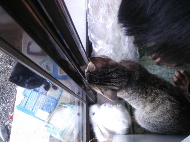 くろた:「この家の庭に居ても、大きな声出されないし少しの間、休ませて貰うかな。あっ、僕と同じ姿の生き物がいる。」