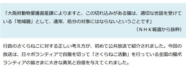 そこには『さくら耳は、適切な処置をされている猫として通常処分の対象にはなりません』とあり