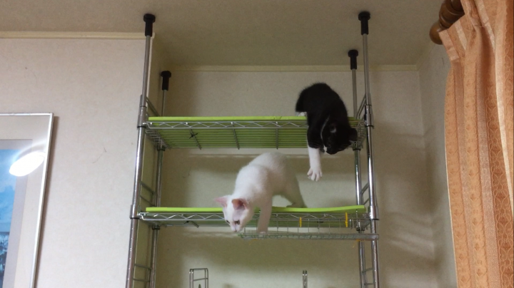 雪と海苔は、毎日走り回りながらキャットタワーで遊んでおり