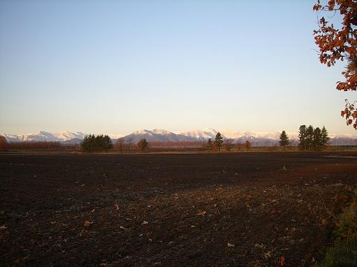 この日は朝から快晴で、山の稜線もくっきり見え、何より奥に見える●●山脈は真っ白に雪化粧しています。