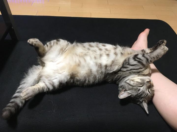 毎回ヘソ天なのでお腹が冷えちゃわないか心配(੭ ˃̣̣̥ ω˂̣̣̥)੭ु⁾