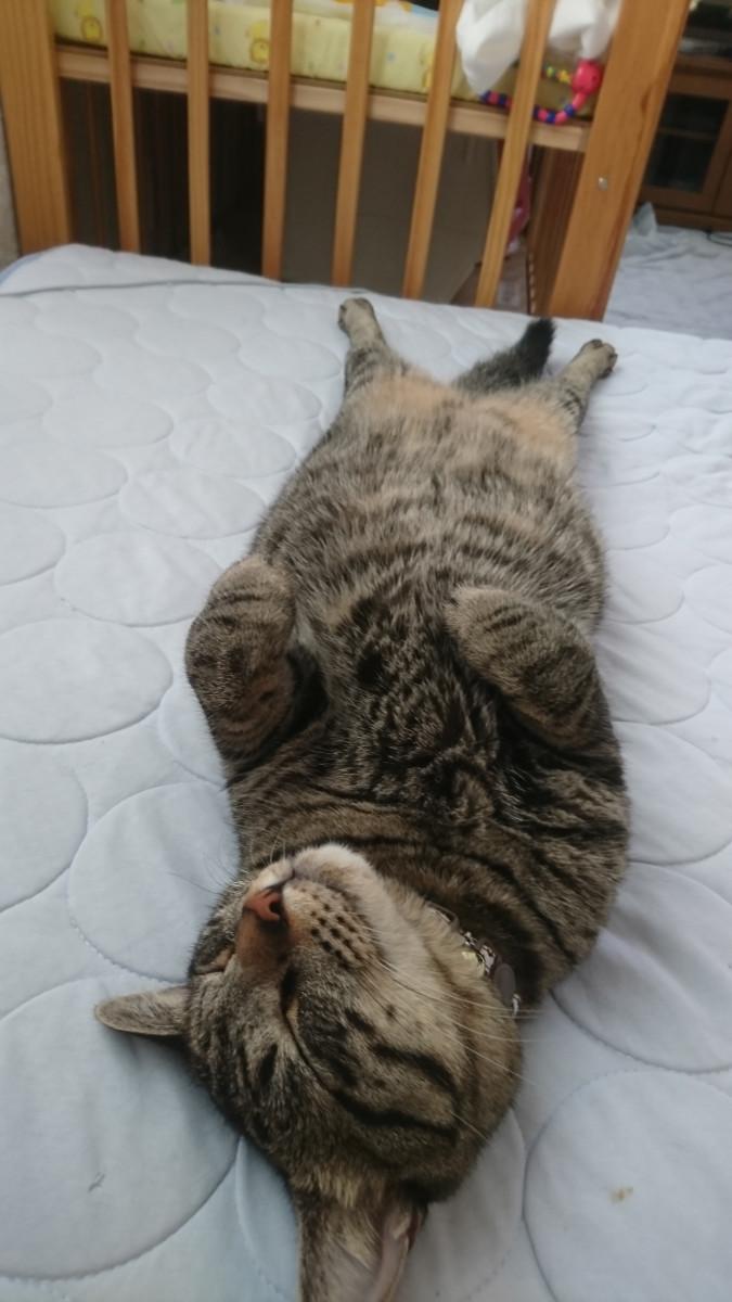 そして安定のラッコ寝ww 実はの猫の皮を被ったラッコなんじゃないかと思う😵💦