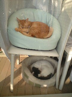 みかんは自分のソファーで、ごはんはカドラーで、すやすやです。