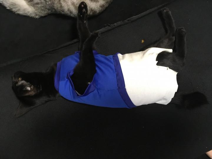 服に慣れてもらう為に買った服を延長し、避妊服を作成しました!