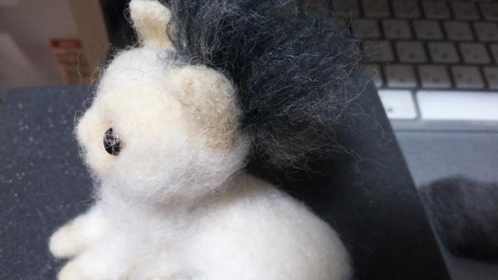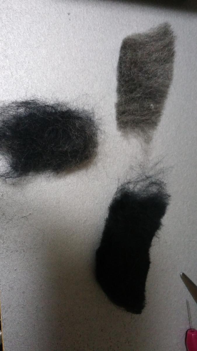 今までの作品は全てアクレーヌを使っておりましたが、やはり本物はアクレーヌと違ってふわふわ感が全然違う。(ちなみにアクレーヌとは羊毛風のアクリル繊維の事)