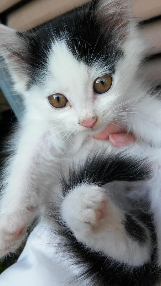 普通に触れて。おとなしく風邪もなく、ノミも居ないことから、人により捨てられた可能性が高く保護しました