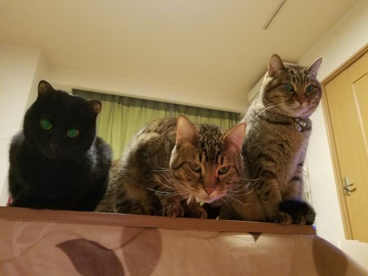 コタツの定位置に座ると、この3匹がいるんです・・・近すぎ❗