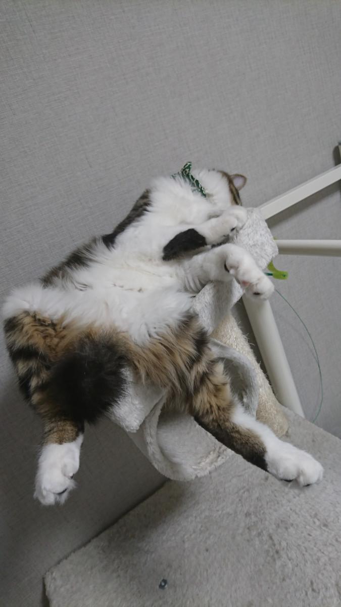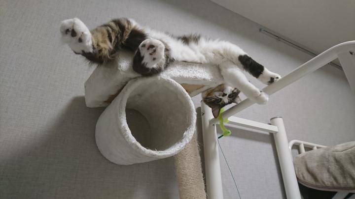 猫ってキャットタワーの上とかの狭い場所でも丸くなって器用に寝ますが..