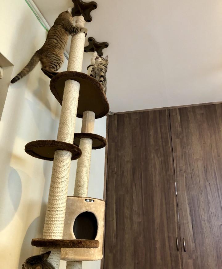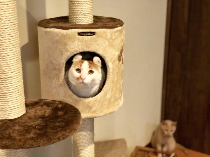 おニューキャットタワー設置しまして、ようやく殆どのコが乗れてます。